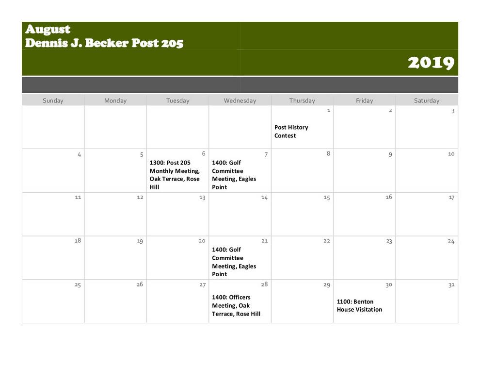 Calendar American Legion