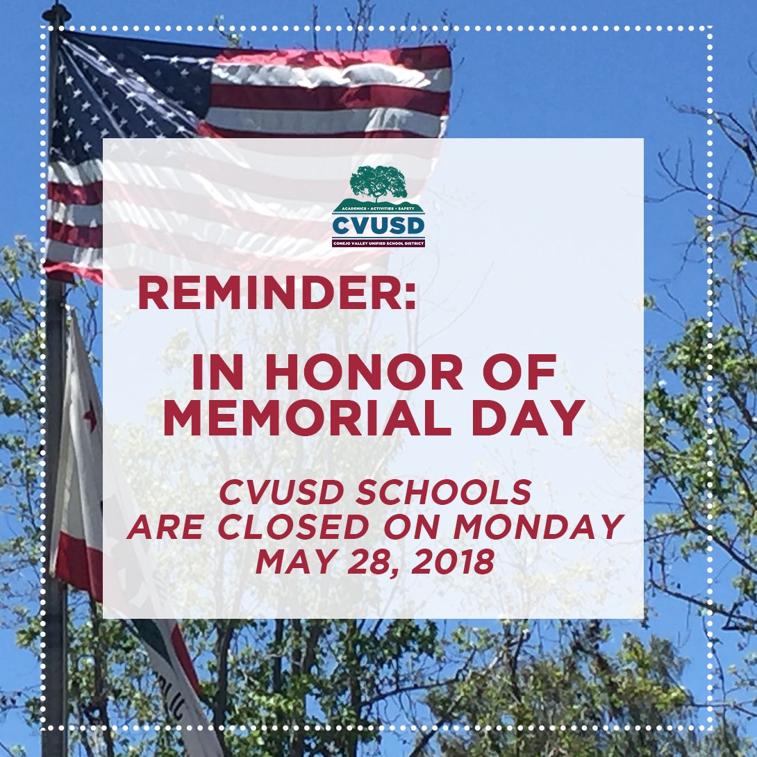 Conejo Valley USD on Twitter "Reminder In honor of Memorial Day all