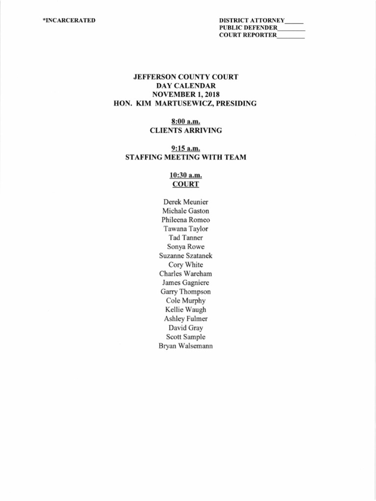 Jefferson County Court Calendar Nov. 1, 2018 PDF
