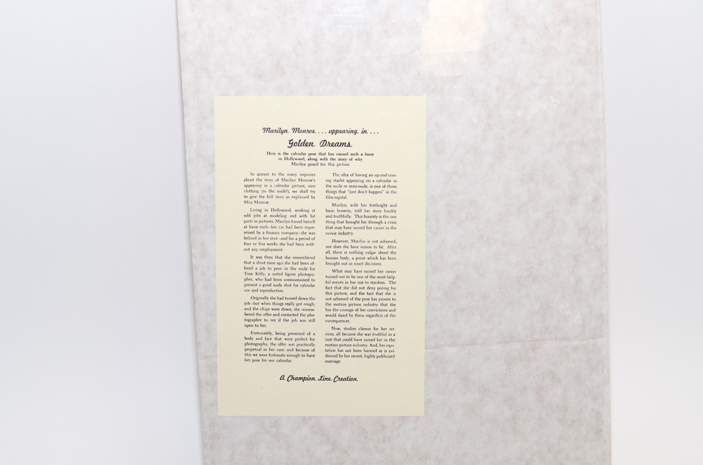 Web A Marilyn Monroe 'Golden Dreams' Calendar, 1955.
