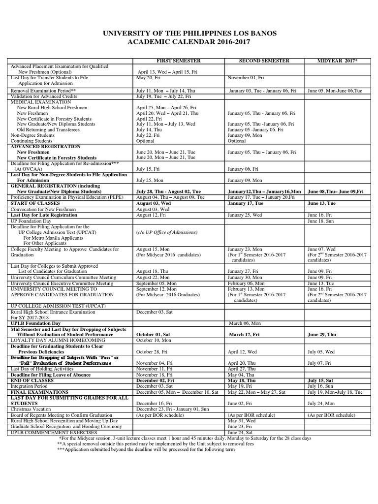 UPLB Academic Calendar 2016.pdf Schools Academia